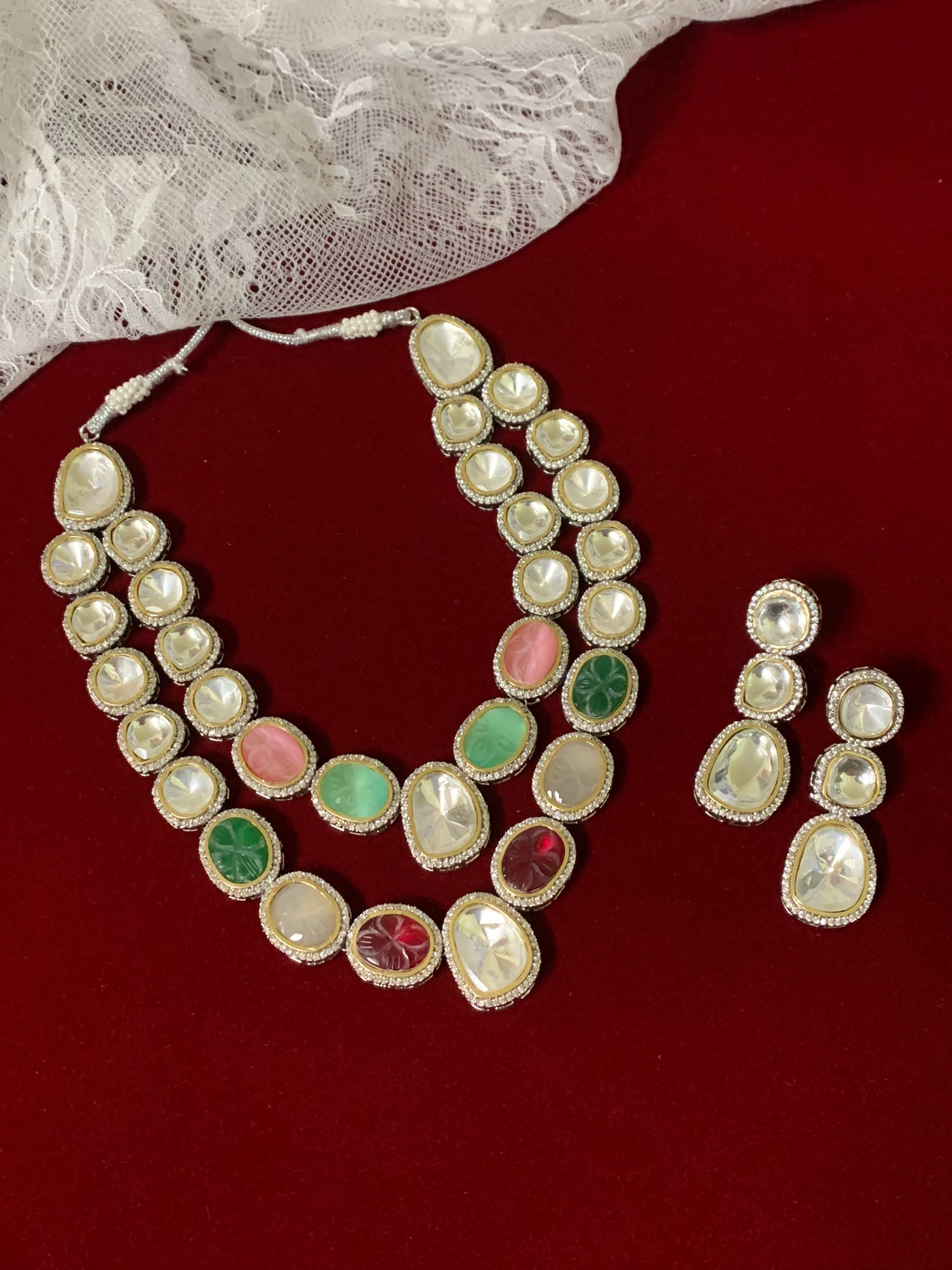 Pihu double layered pastel multi uncut kundan choker / necklace