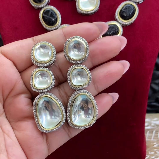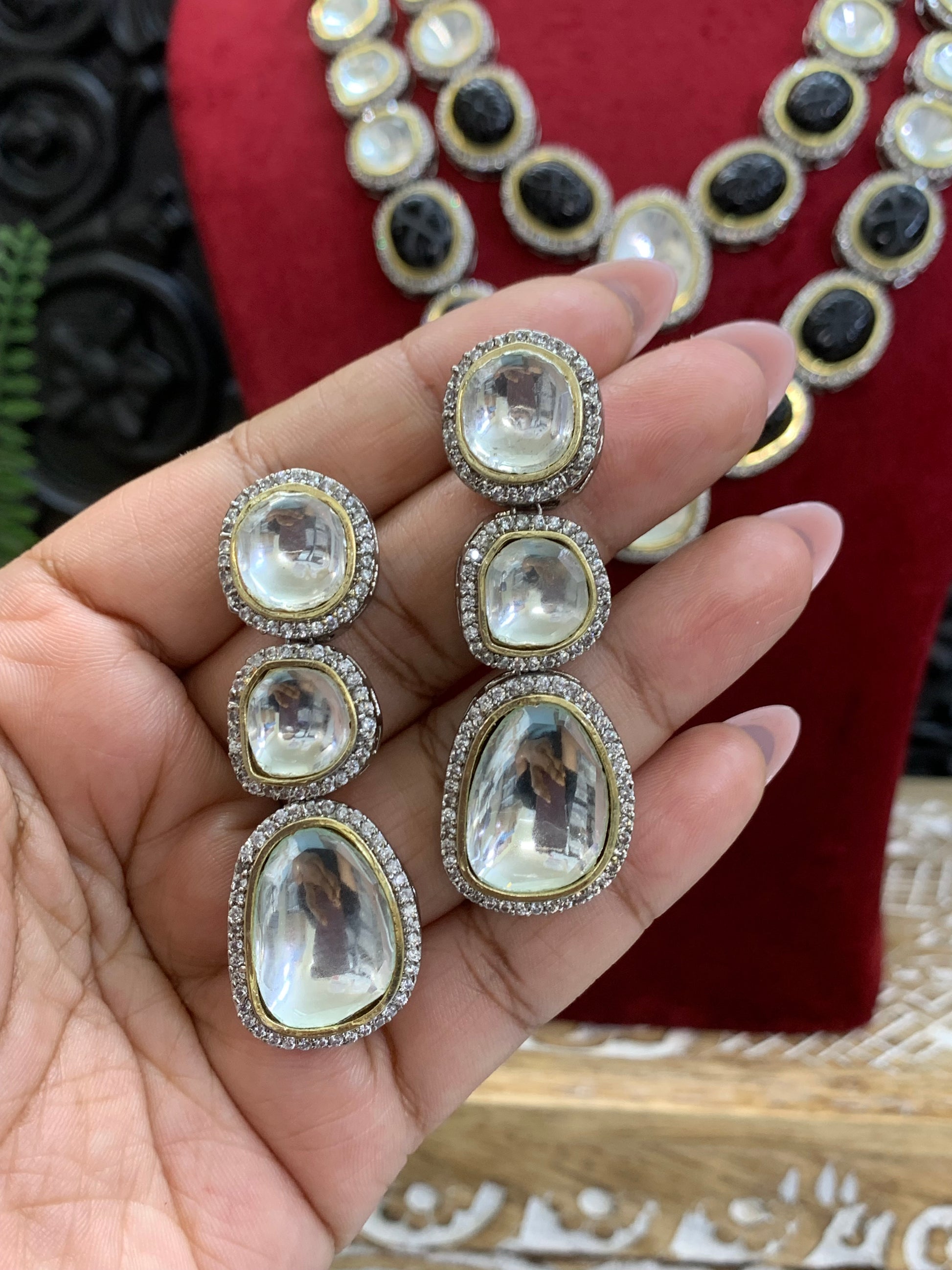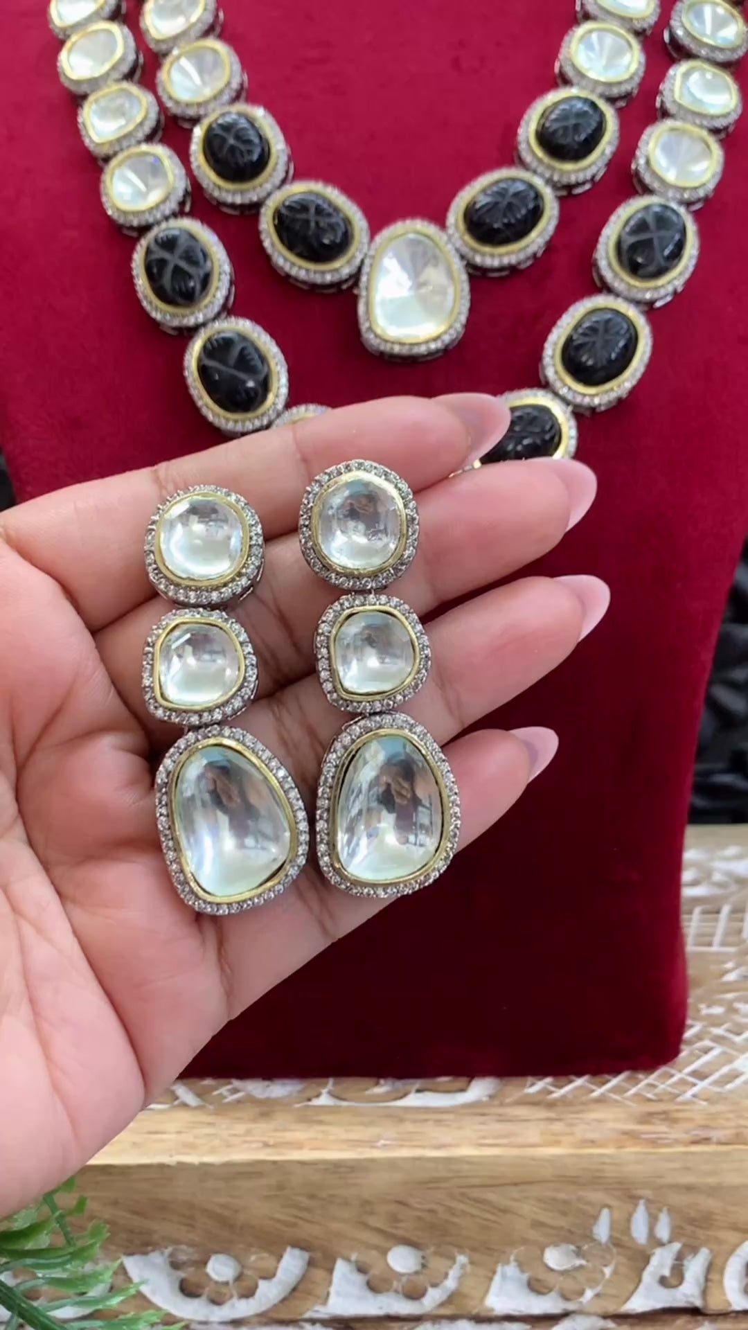 Victorian base (gold and black) brass made, uncut kundan . Comes with matching earring.