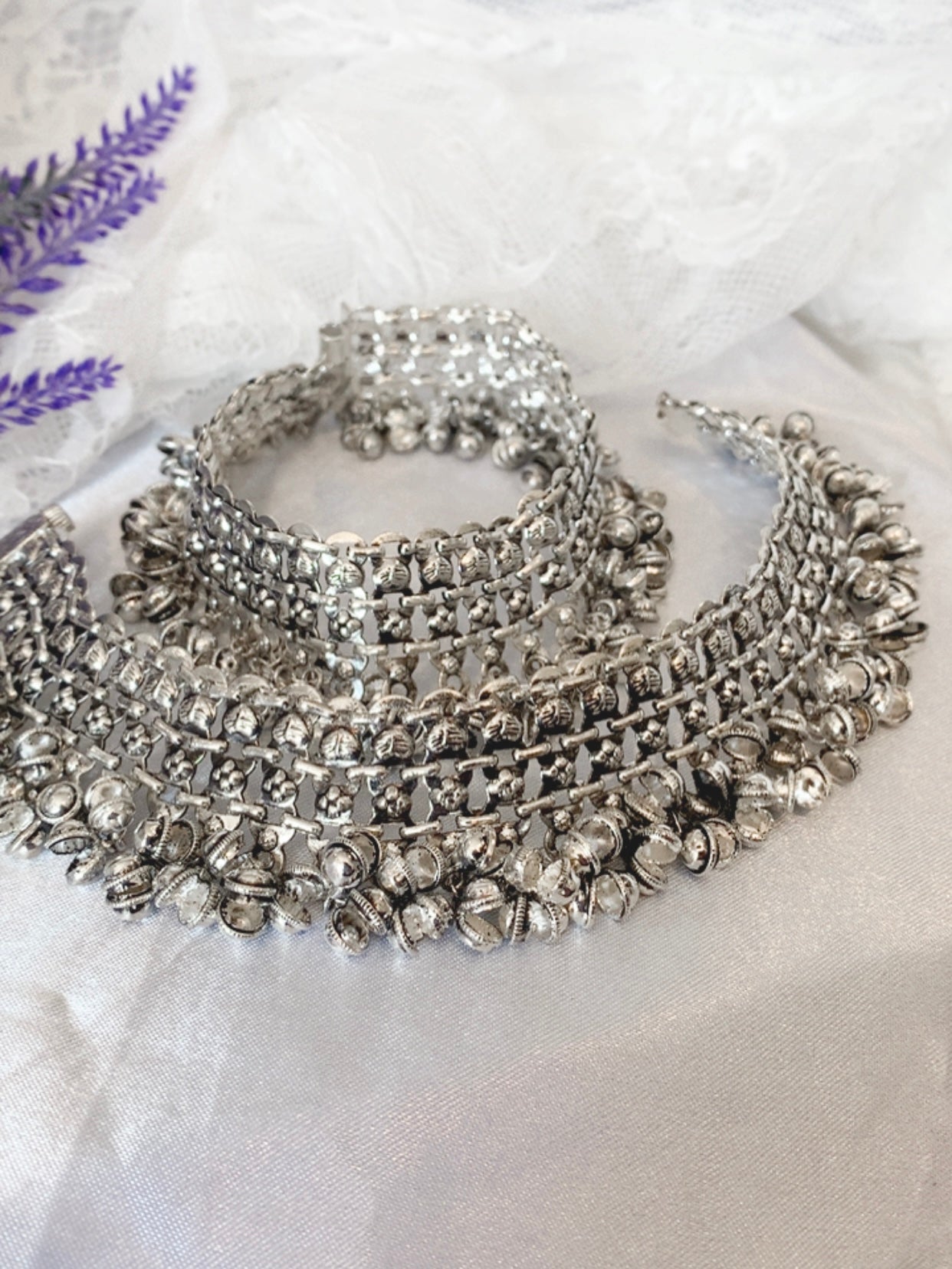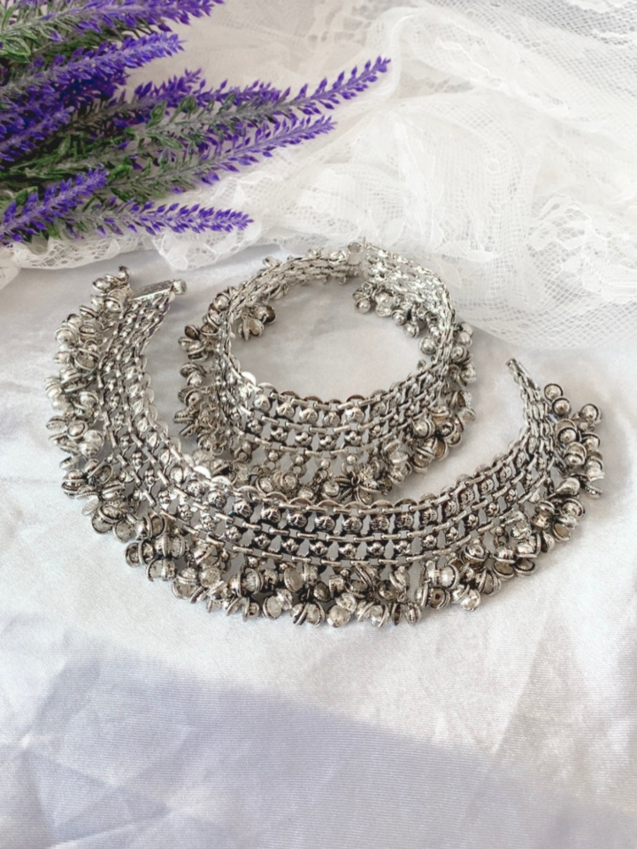 Bridal Antique payal set (pair). One and half inch thick . About 9 inch long each and 4.5 inch closed.